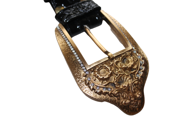 Ta klamra to prawdziwa biżuteria, która ozdobi każdy pasek. Jest wykonana z mosiądzu i ma niepowtarzalny krztałt i wzór, dodatkowo wzbogacona jest kryształkami Swarovskiego.