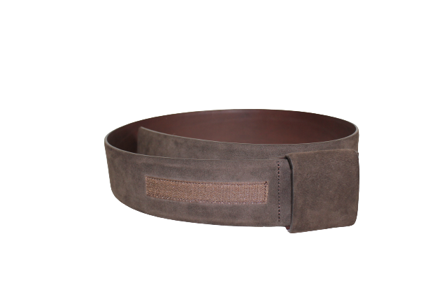 Damski pasek skórzany, zapinany na rzepę. Może być dowolnie regulowany.