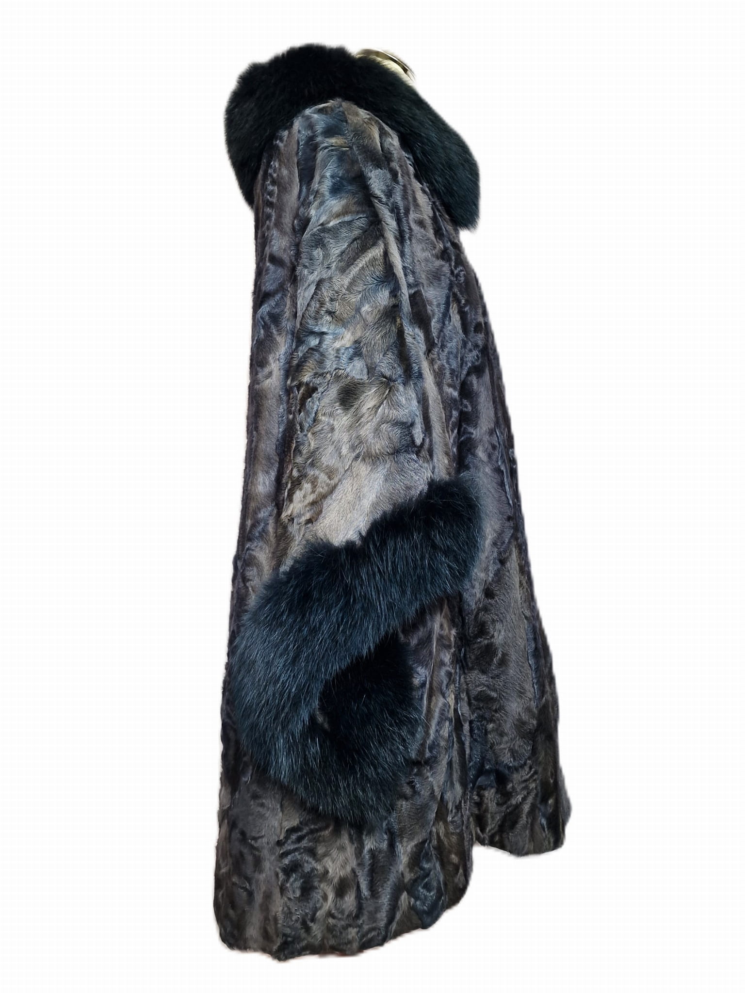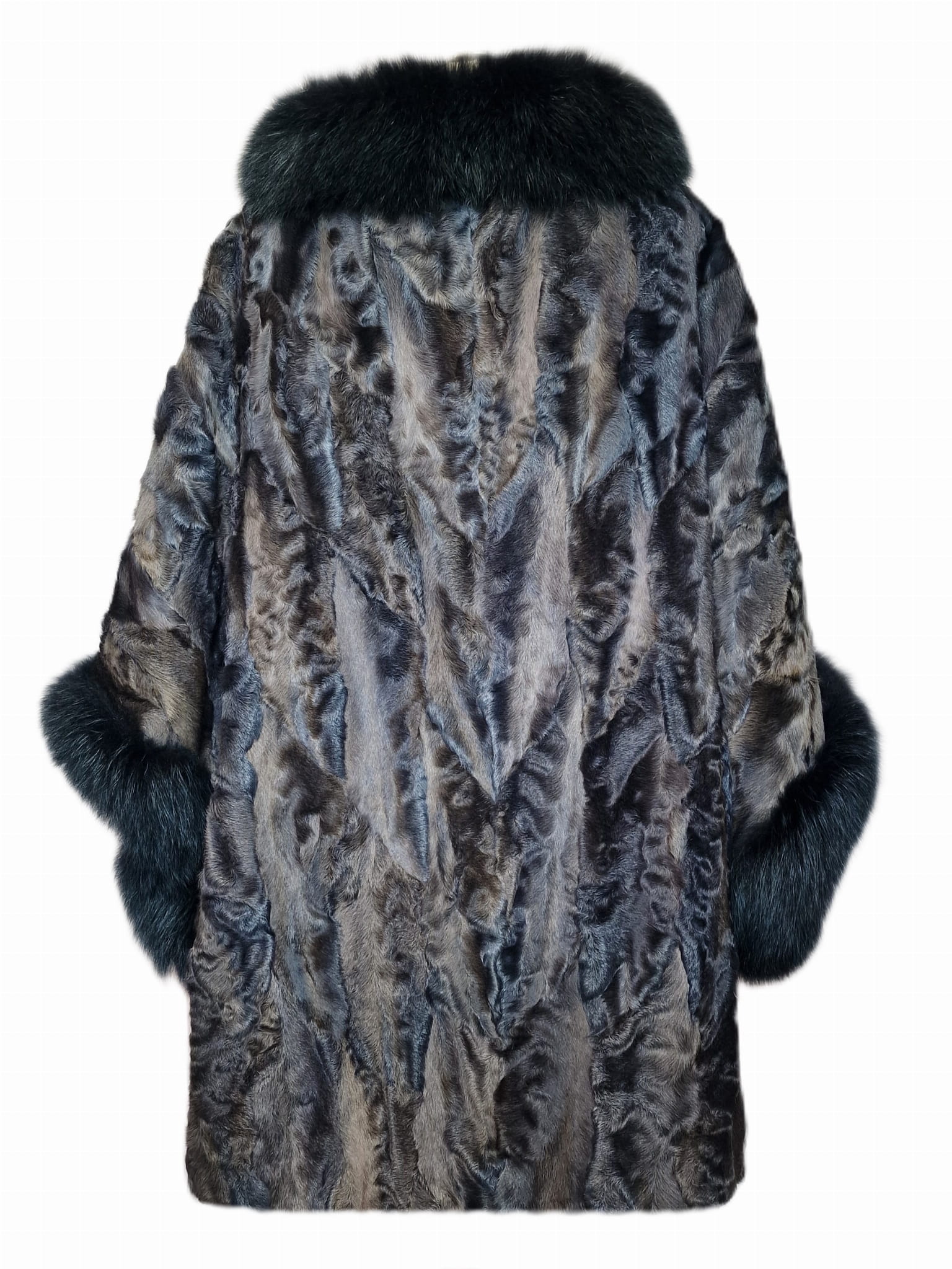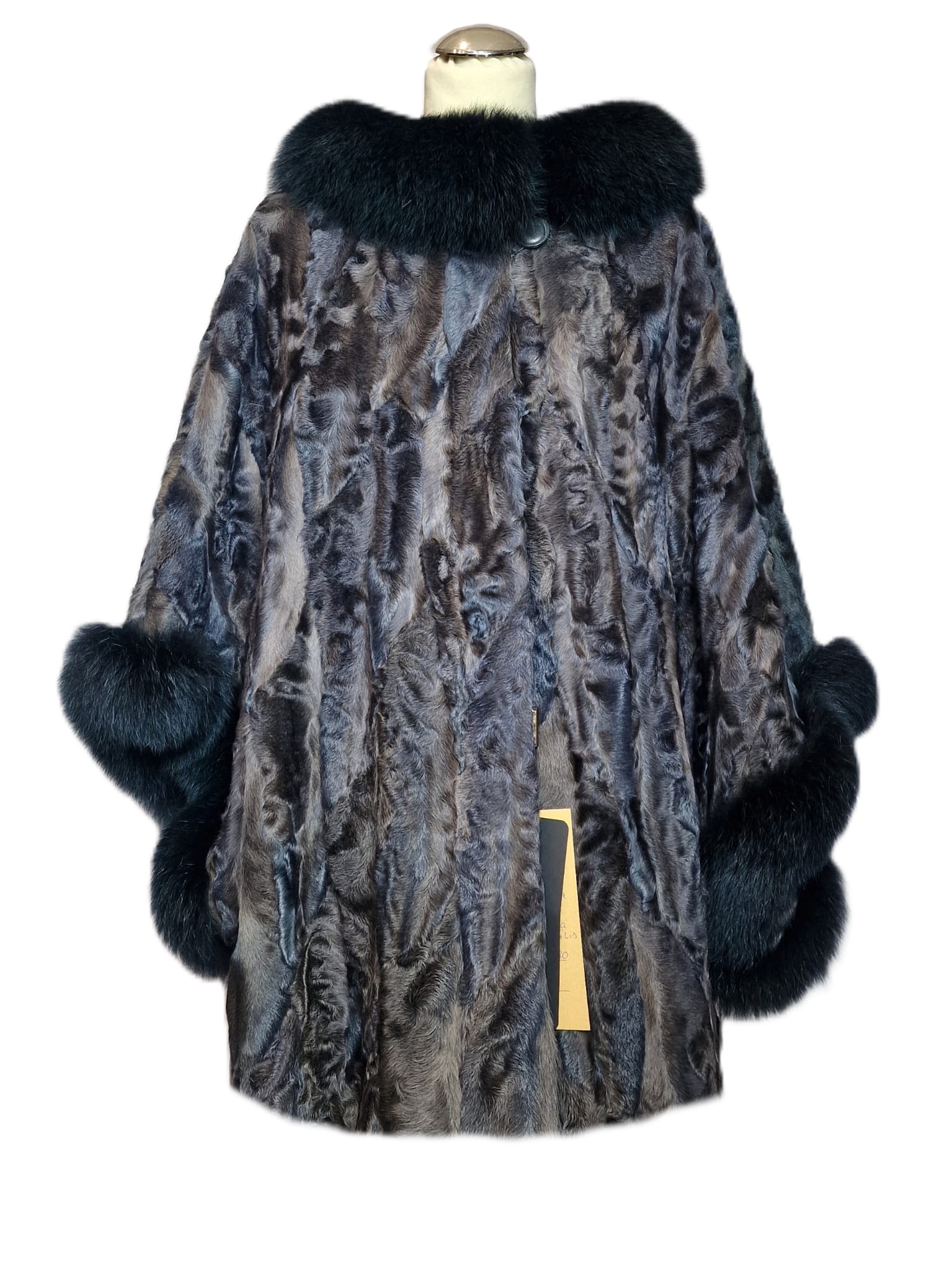 Peleryna z futra karakuła z pięknym obszyciem z lisa
