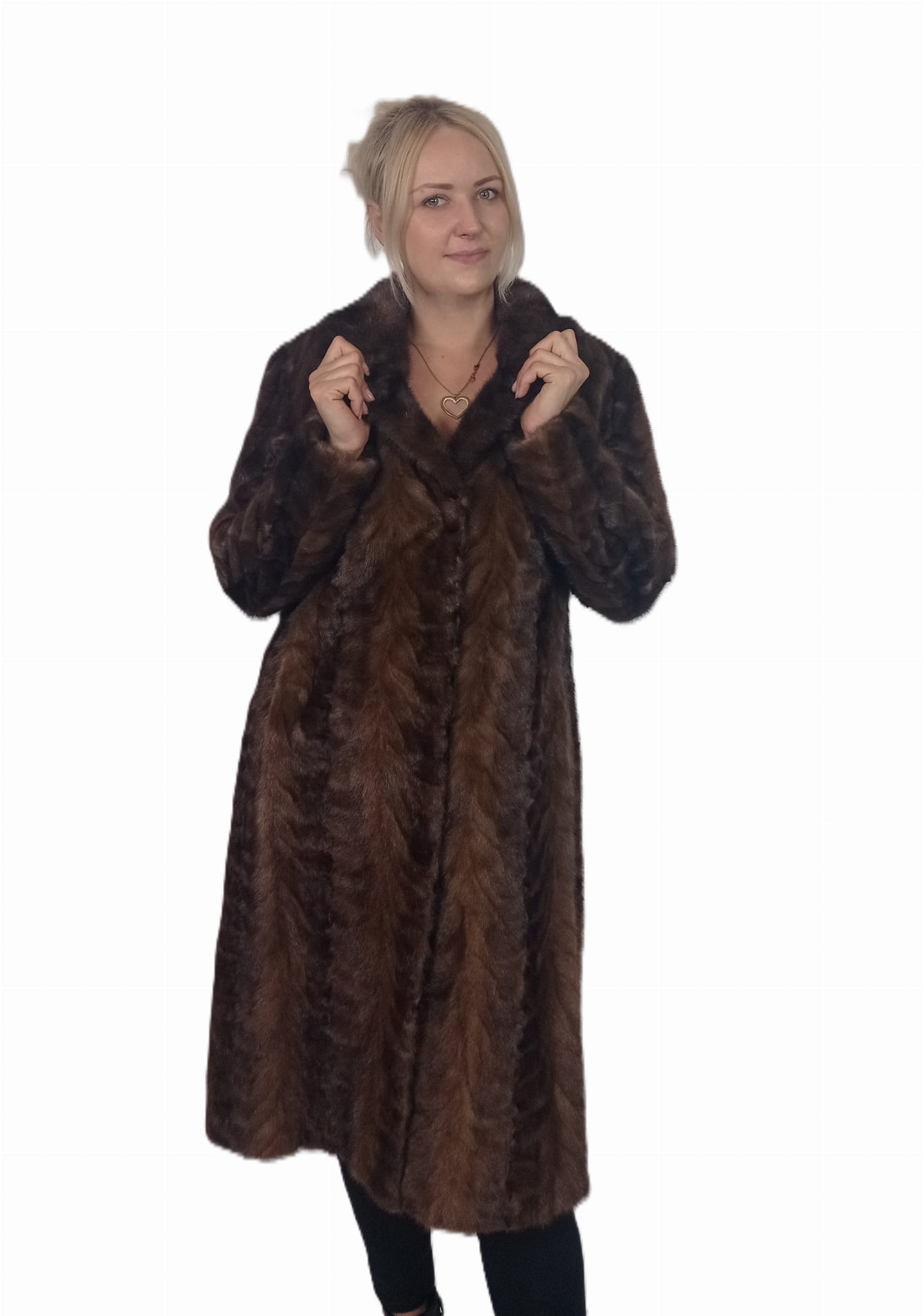 Ekskluzywny model zachwyca ciepłym odcieniem brązu oraz miękką, strukturą futra.