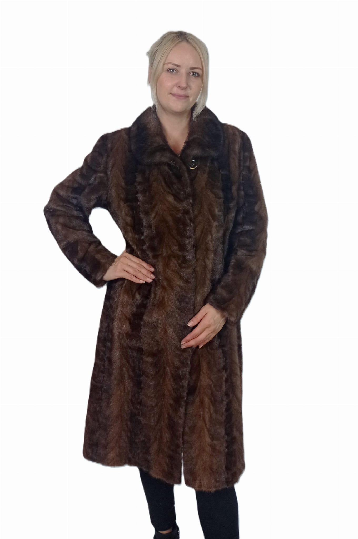 Elegancki damski płaszcz z naturalnego futra norek.
