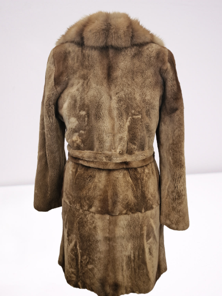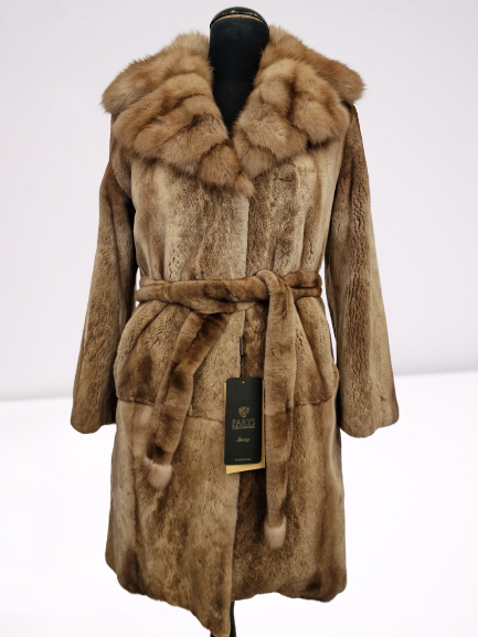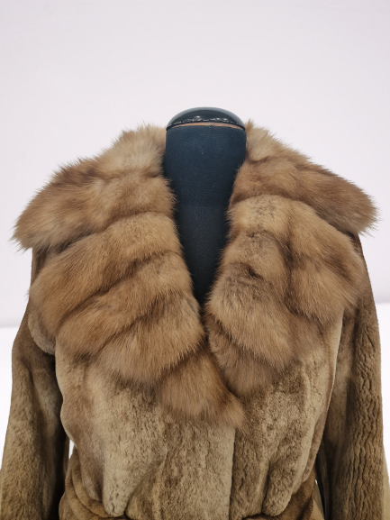 Płaszcz z futra norek z kołnierzem z sobola