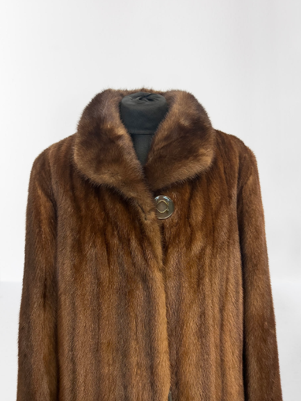 Płaszcz grzbiety norcze Mink Male w kolorze czekolady.
