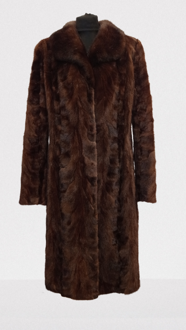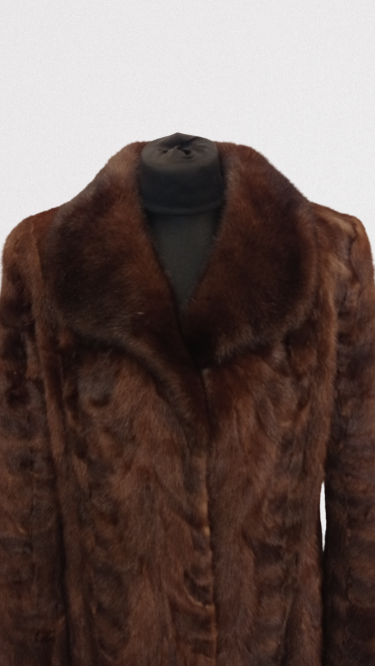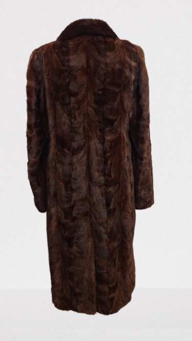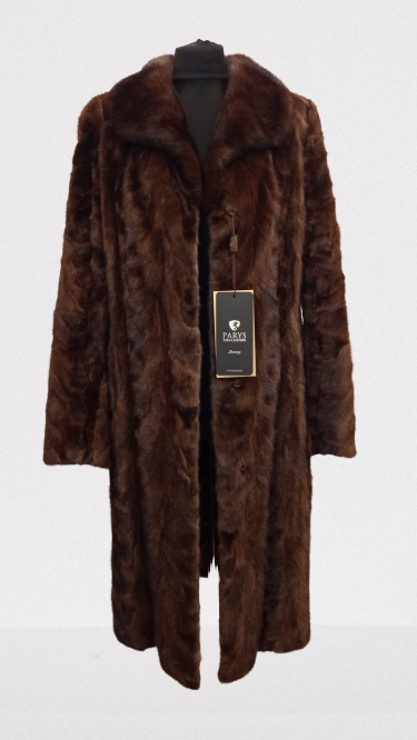 Ponadczasowy płaszcz o klasycznym kroju, wykonany z miękkiego, naturalnego futra norek.