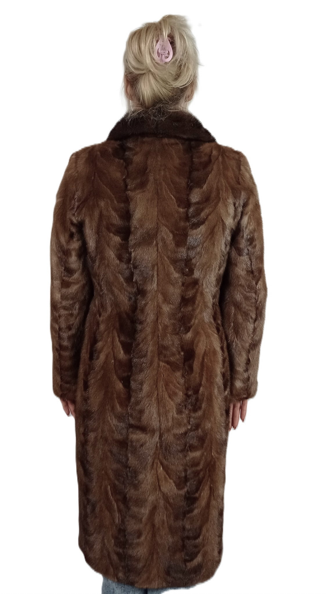 Ponadczasowy płaszcz o klasycznym kroju, wykonany z miękkiego, naturalnego futra norek.