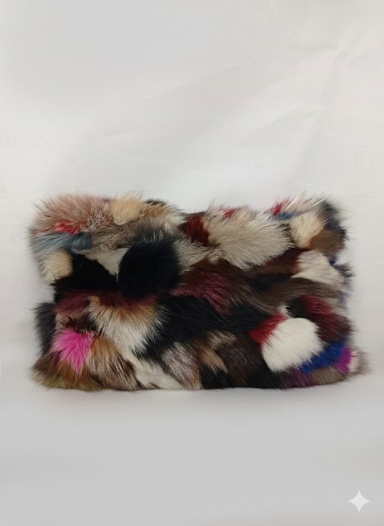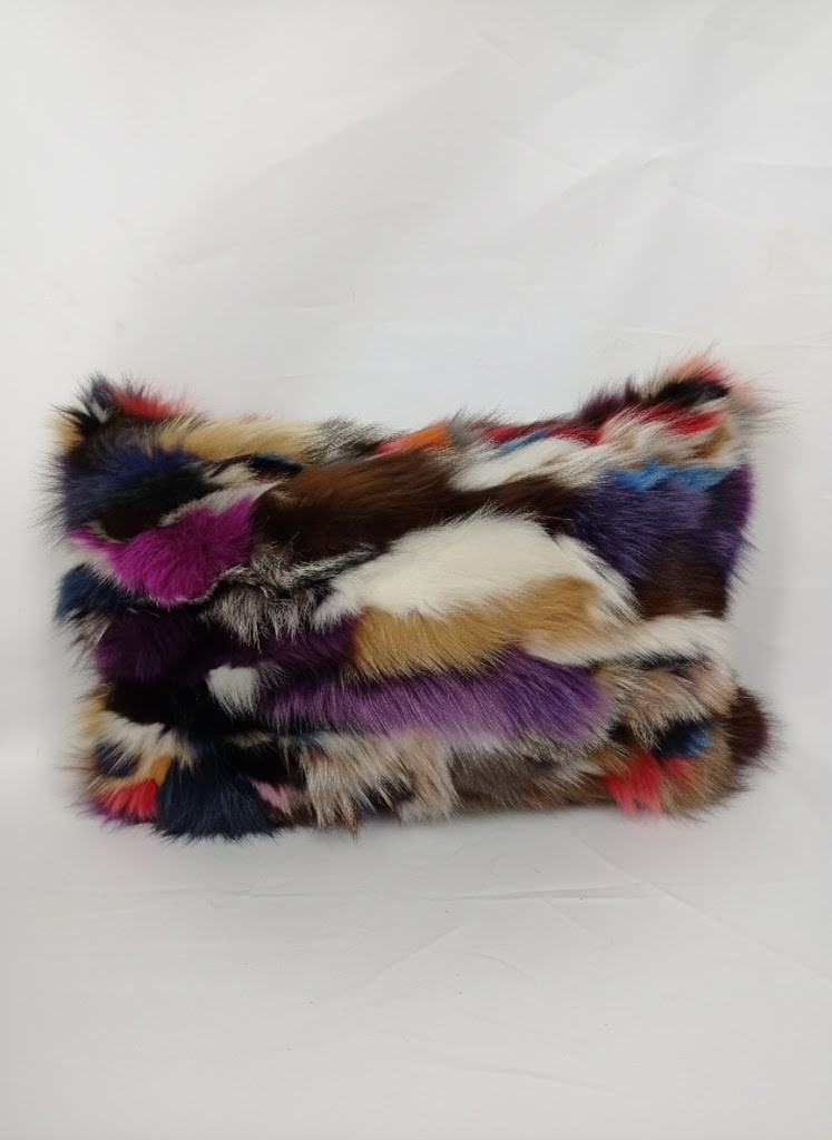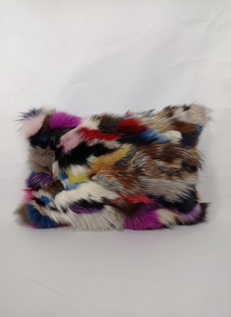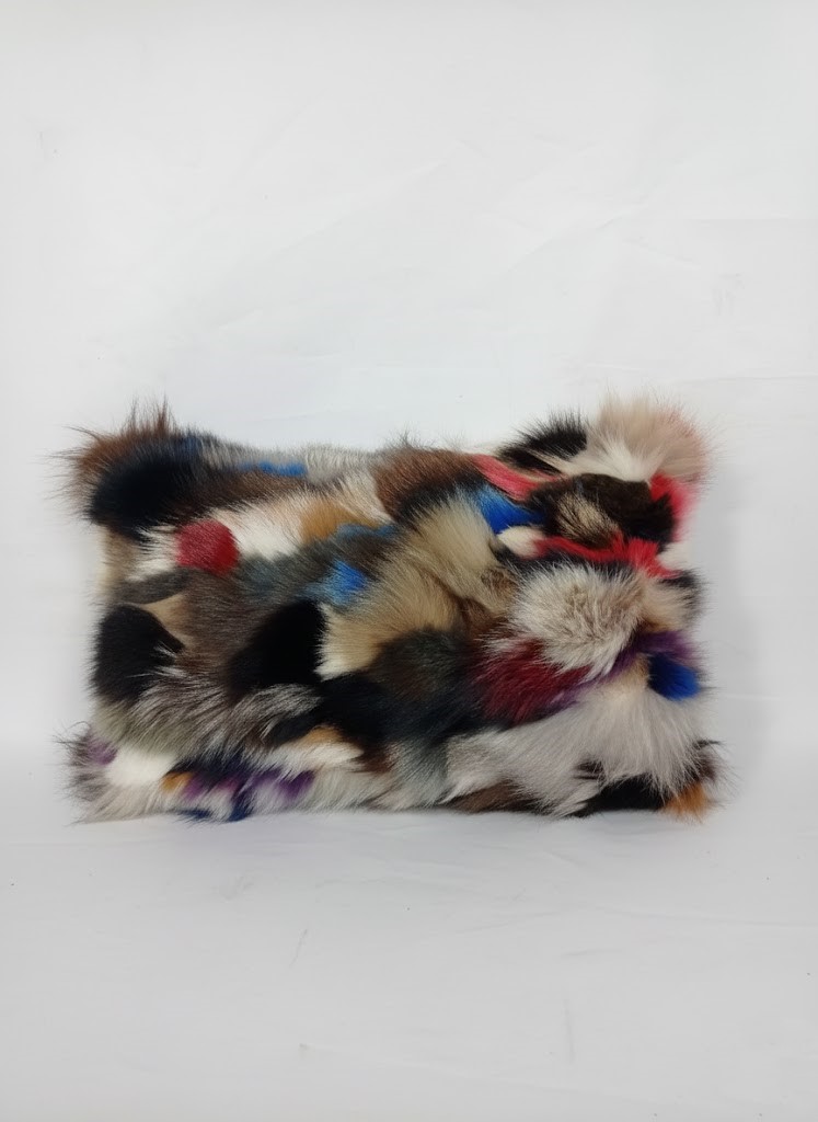 Poduszka wykonana z wielokolorowych kawałków naturalnego futra lisa zachwyca oryginalnym wzornictwem i niepowtarzalnym charakterem.