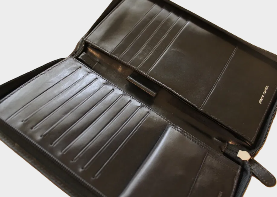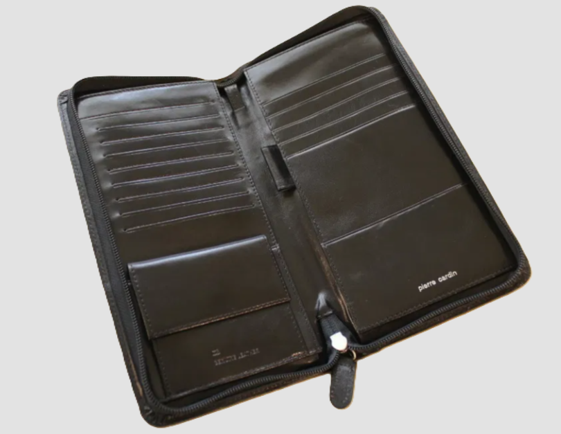 Portfel niezwykle pojemny, przegródki na karty i dokumenty, dwie duże przegródki, zapinany na suwak.