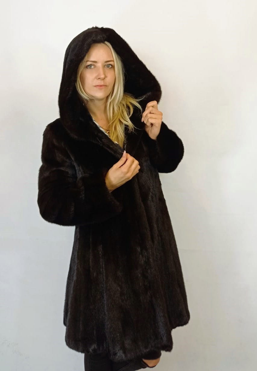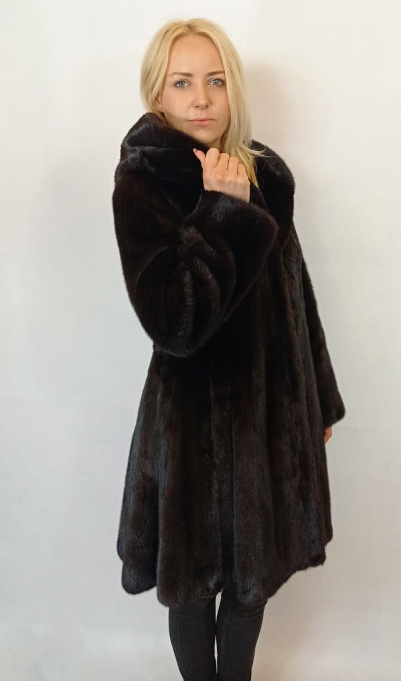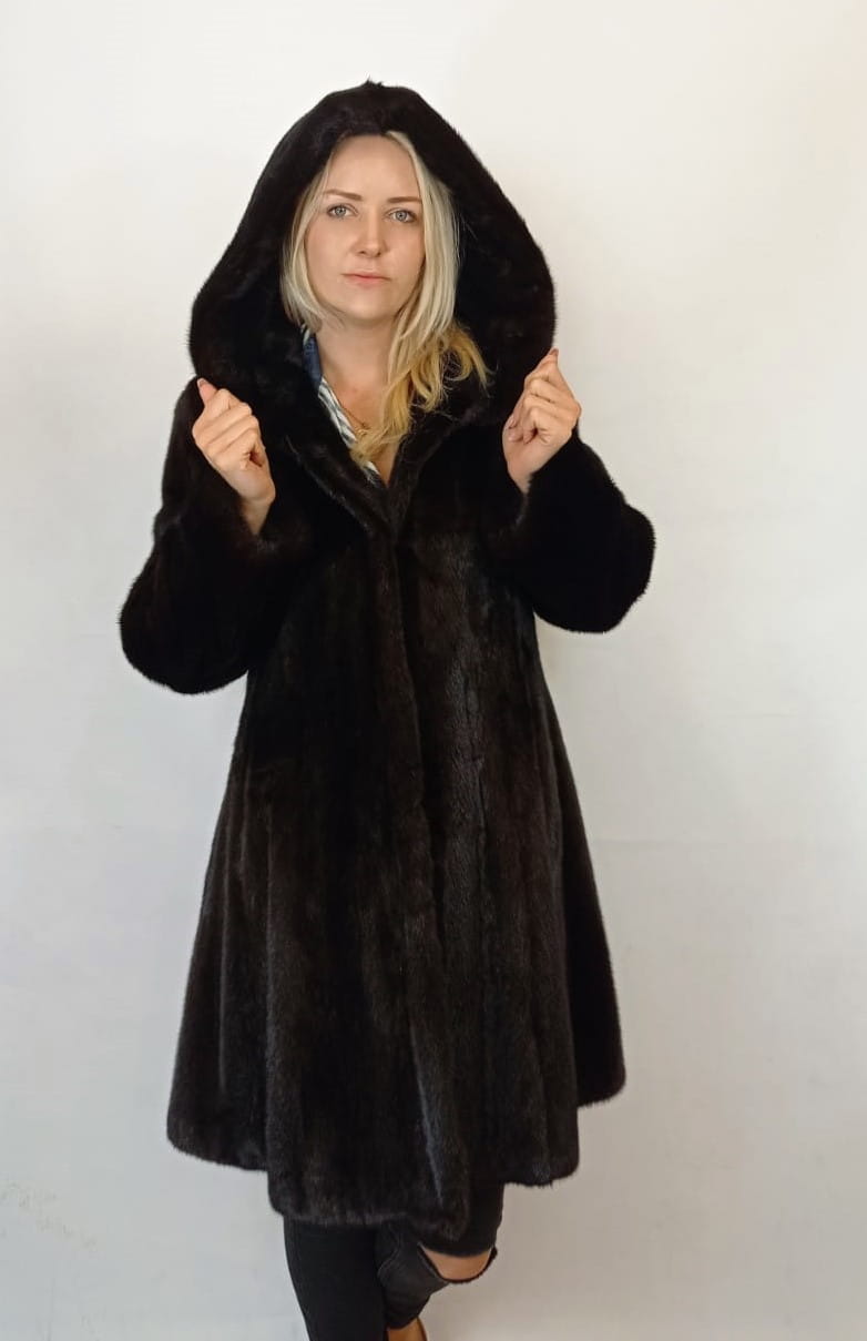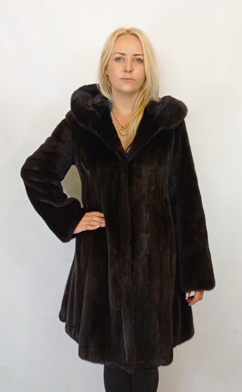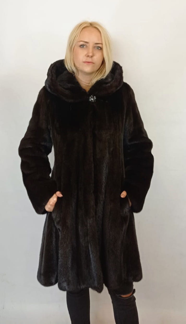 Wysokiej jakości rozkloszowana kurtka damska z futra norek.