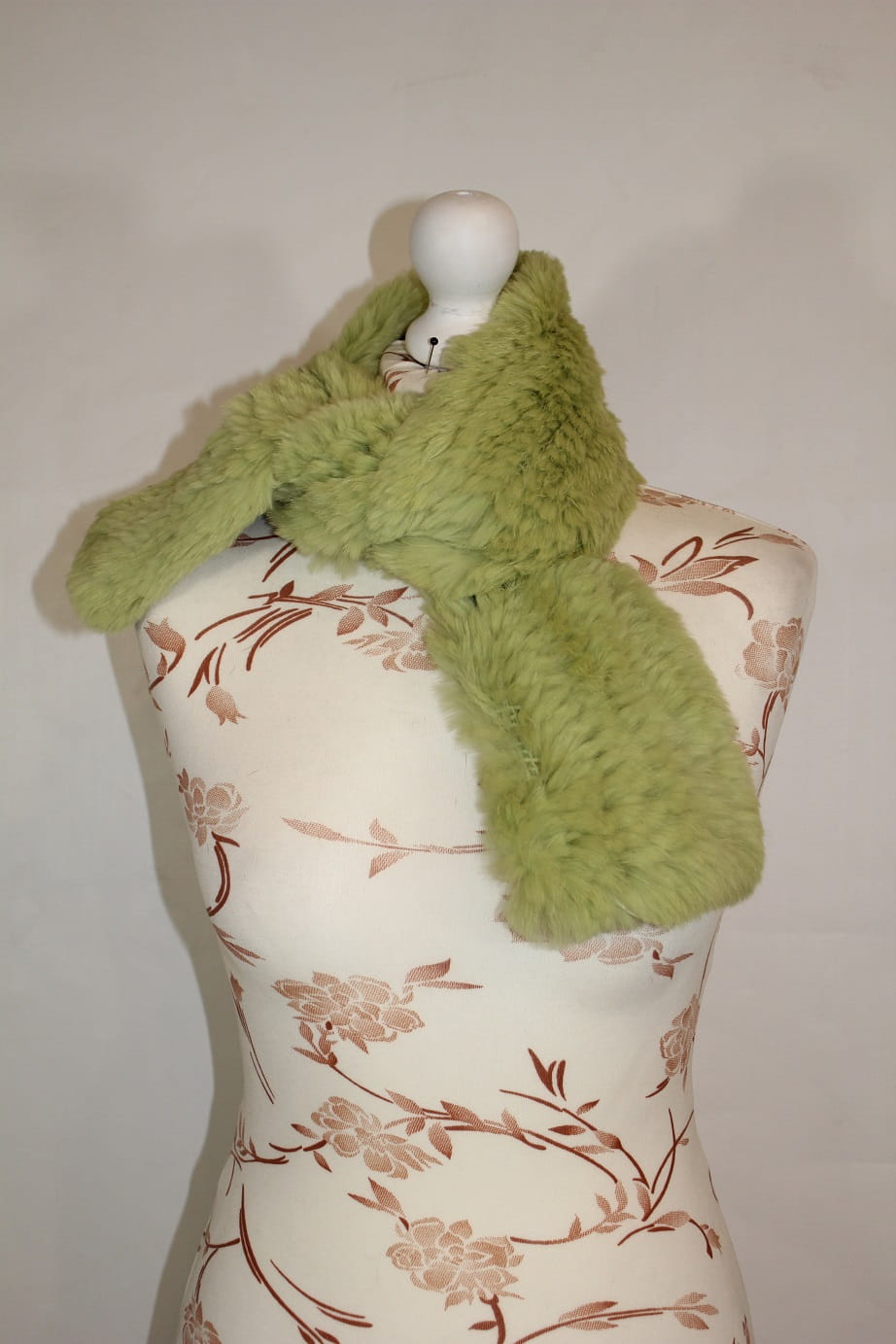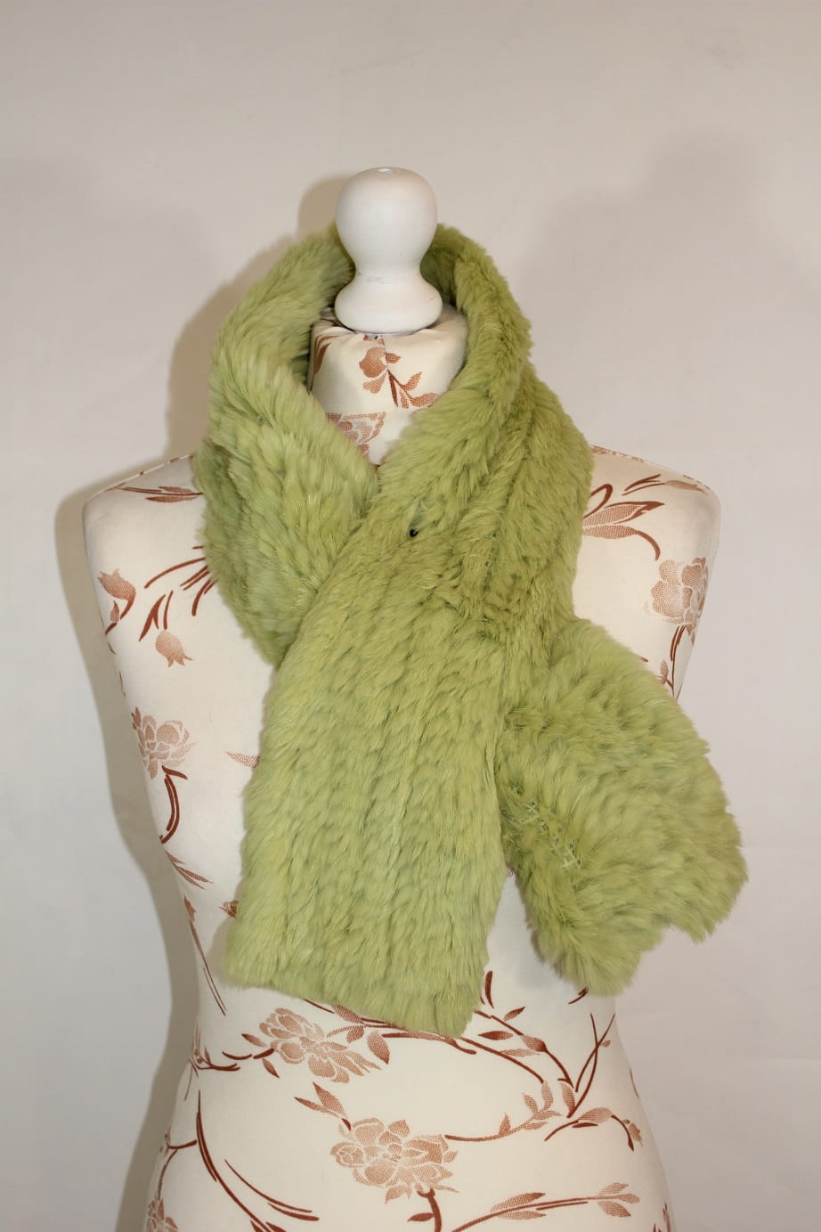 Szal pleciony, wykonany z naturalnego futra królika.