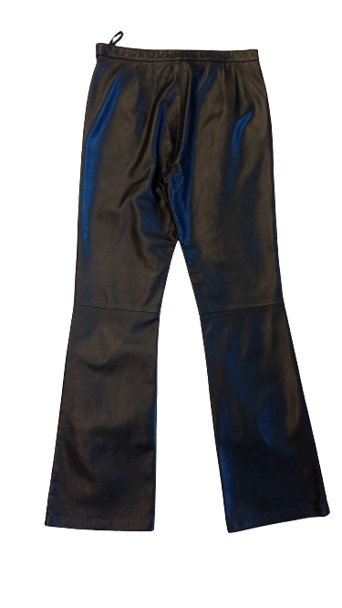 Skóra w kolorze głębokiej czerni delikatnie błyszczy w świetle, nadając spodniom luksusowego charakteru.