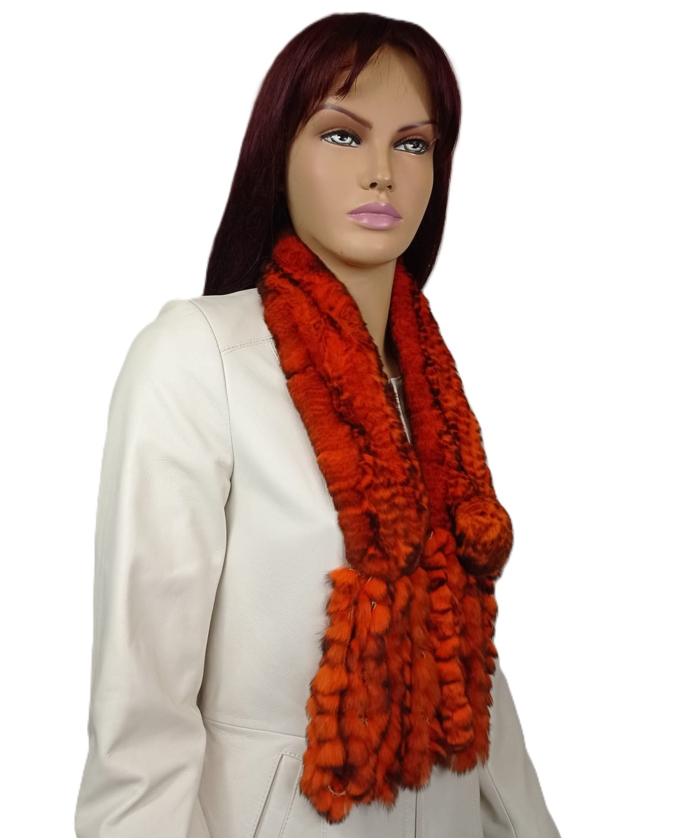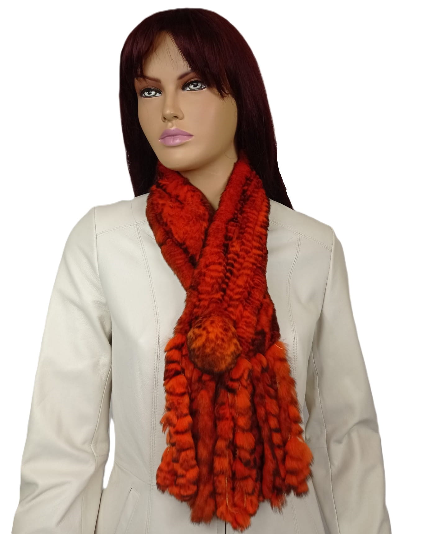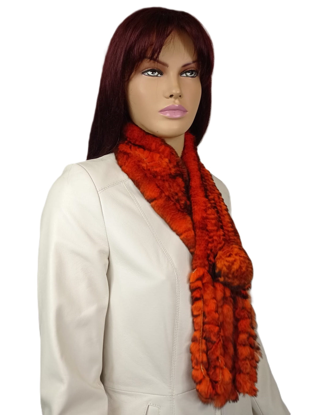 Elegancki szaliczek wykonany z wysokiej jakości naturalnego futra królika Rex, wyróżniający się miękką, puszystą strukturą oraz wyrazistą kolorystyką.