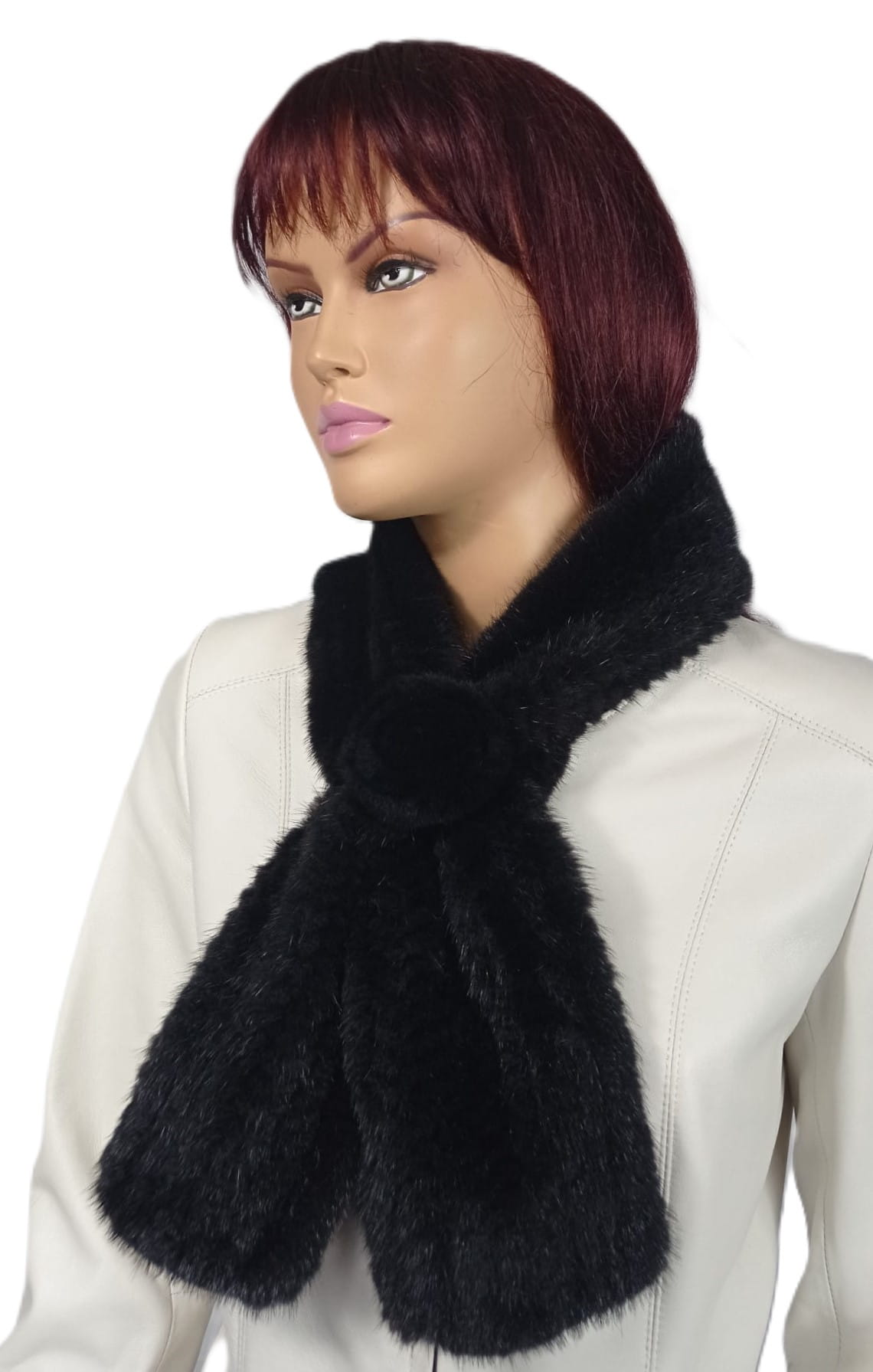 Szalik z naturalnego futra norki z dekoracyjną różyczką