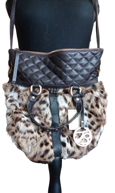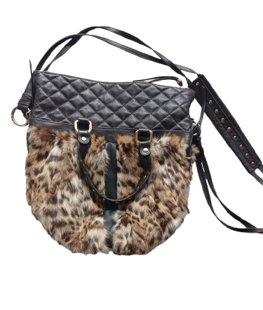 Torba skórzana z obszyciem z futra królika stemplowanego